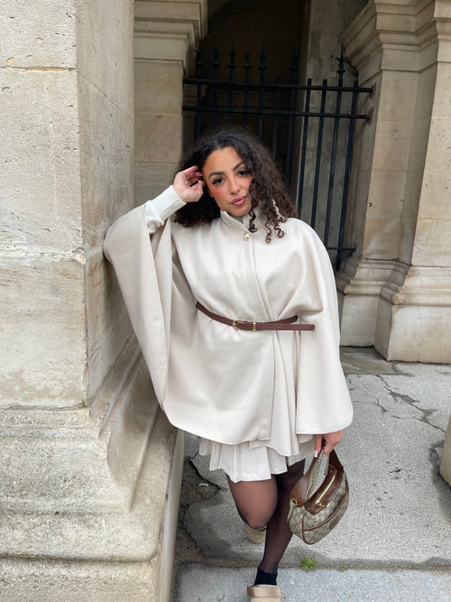 Ensemble jupe plissée & veste sans manche à col V Beige - ELEGANCE
